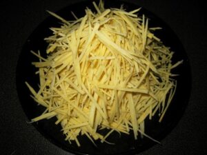 3. ซอยมันเทศให้เป็นเส้น ๆ