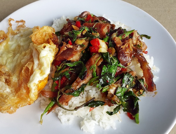 มาเติมความอร่อยให้กับผัดกะเพราจานโปรดของคุณกันอีกสักหน่อยด้วย หมูย่าง ราดบนข้าวสวยร้อน ๆ โปะไข่ดาวสักหน่อย ฟินเวอร์