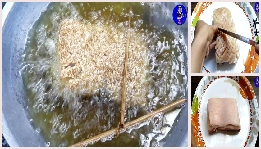 ใช้น้ำมันในการทอดเยอะ และอย่าให้หนังหมูติดกระทะ