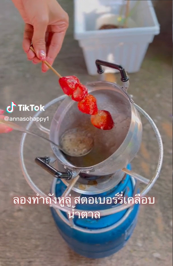 โดยล่าสุดบัญชีผู้ใช้ Tiktok ที่ใช้ชื่อ @annasohappy1 ได้ออกมาโพสต์วิธีการทำ ถังหูลู่แบบง่ายๆที่สามารถทำทานเองได้ที่บ้าน โดยระบุว่า “ลองทำถังหูลู่ สตอเบอร์รี่เคลือบน้ำตาล”