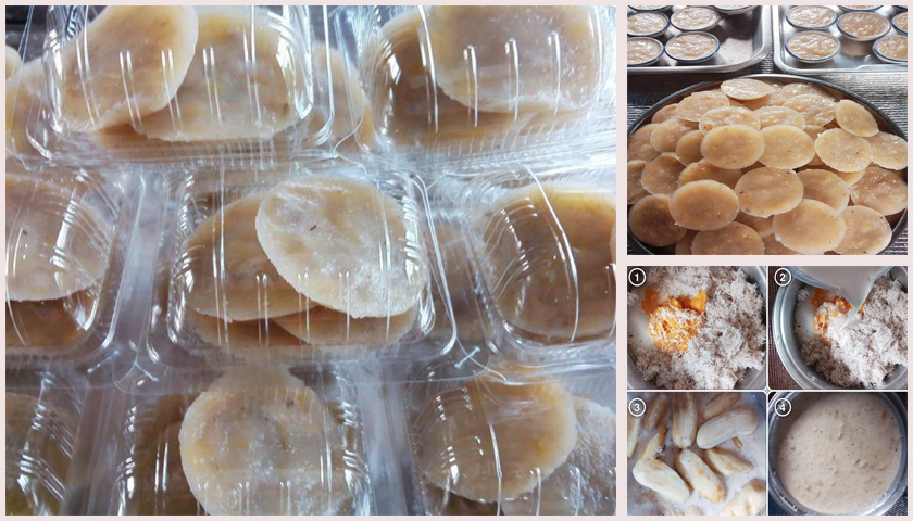 ในรูปขนมกล้วยของเราจะมีจุดดำๆของกะลามะพร้าวติดอยู่เลยดูไม่สวยเท่าไหร่ หากใครพอมีเวลาขูดมะพร้าวเอง