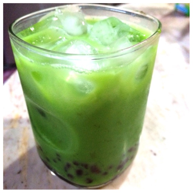 พอดีชาเขียวมันเหลือเลยจัดการเทขาเขียวทานกับถั่วแดงเหมือนสตาร์บัค(รึเปล่าน้า แหะๆ)