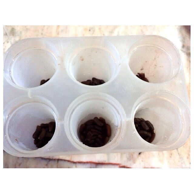 6.นำไปเทใส่พิมที่มีถั่วแดงที่เราเตรียมไว้ และนำไปแช่แข็ง