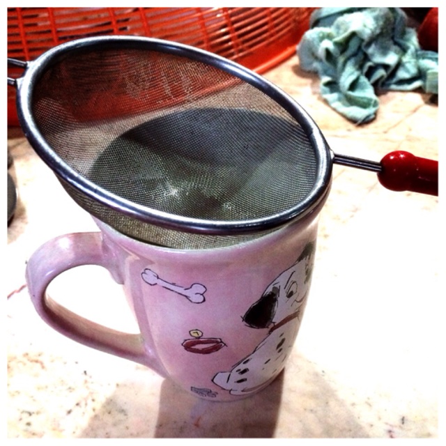 4.จากนั้นใช้ที่กรองชา หรืออะไรก็ได้แยกกากชาเขียวออกมา ต้มไม่ต้องนานนะคะ เดี๋ยวจะขม