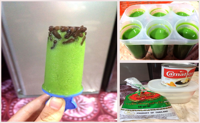 5.ใส่น้ำตาลกับนมข้นหวาน ตามระดับความหวานที่เราต้องการ จากนั้นใส่นมสดให้สีเขียวดูอ่อนลงและน่ารักประทานขึ้น[ads2]