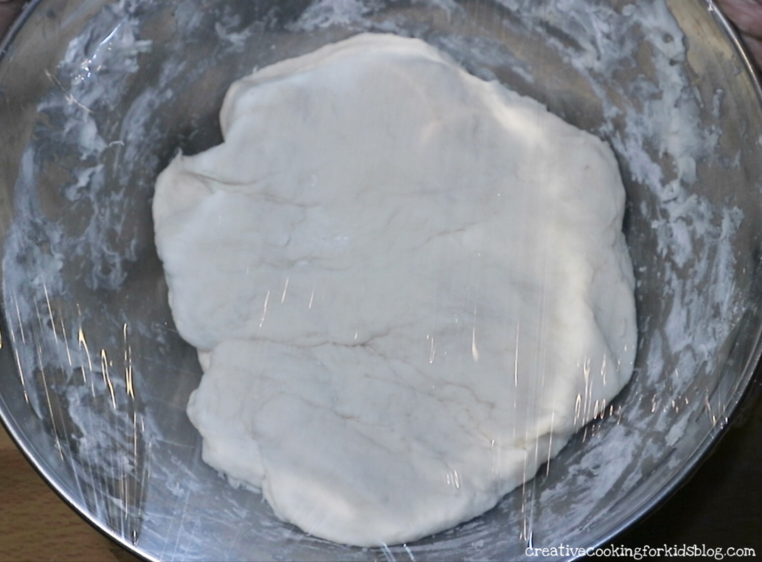 2. นวดให้เข้ากันแล้วคลุมด้วยพลาสติกแรป ทิ้งไว้ประมาณ 30 นาที หรือจนแป้งขึ้นเป็น 2เท่า​[ads]