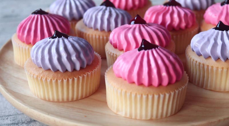อื้อหือ ! คัพเค้กฟิลลิ่งบลูเบอร์รีหน้าตาน่ารักมาก เหมาะทั้งทำขายและเป็นเค้กวันเกิดด้วย สามารถเปลี่ยนรสชาติของคัพเค้ก สีสันของวิปครีม และรสชาติฟิลลิ่งได้ตามชอบด้วย