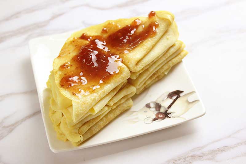 ► นำแพนเค้กที่ได้ทาด้วยแยมหรือน้ำผึ้ง หรือจะกินเฉพาะแป้งก็อร่อย