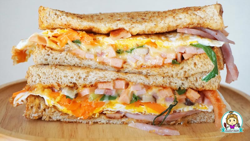ขนมปังโทสต์ไข่แฮมชีส อาหารเช้าเน้นเครื่อง