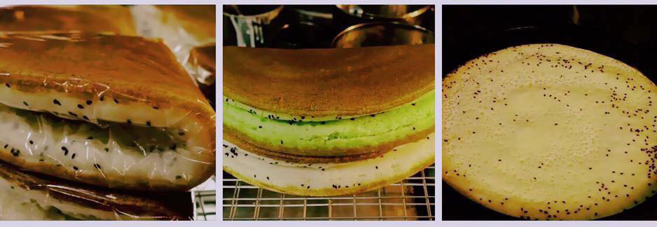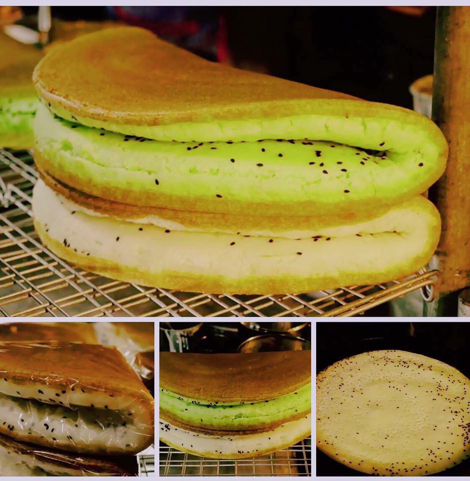 3. ทาน้ำมันที่กระทะ ตั้งไฟจนร้อนจัดแล้วลดไฟลง ตักแป้ง (ประมาณ 1/2 ถ้วยตวง) ใส่กระทะเหล็ก พอแป้งเริ่มสุก จึงโรยน้ำตาลทราย (ตามความหวานที่ชอบ), งา และมะพร้าวขูด แซะพับครึ่งแล้วตักขึ้นใส่จานเสริฟ