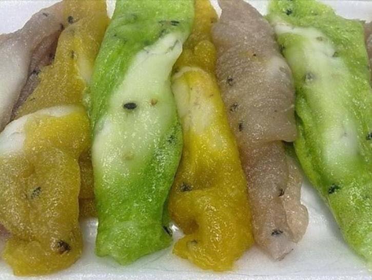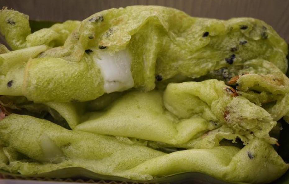 3. ต่อยไข่ใส่ชาม ตีให้เข้ากัน ใส่หัวกะทิ เกลือ น้ำปูนใส น้ำ คนให้เข้ากัน หรือถ้าไม่ต้องการใส่น้ำใบเตยก็ได้จากนั้นค่อยเทน้ำใบเตยลงไป จะได้สีเขียวออกมา คนไปเรื่อยๆจนน้ำใบเตยหมด