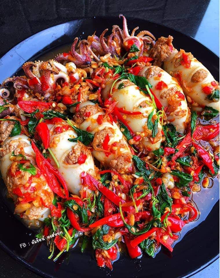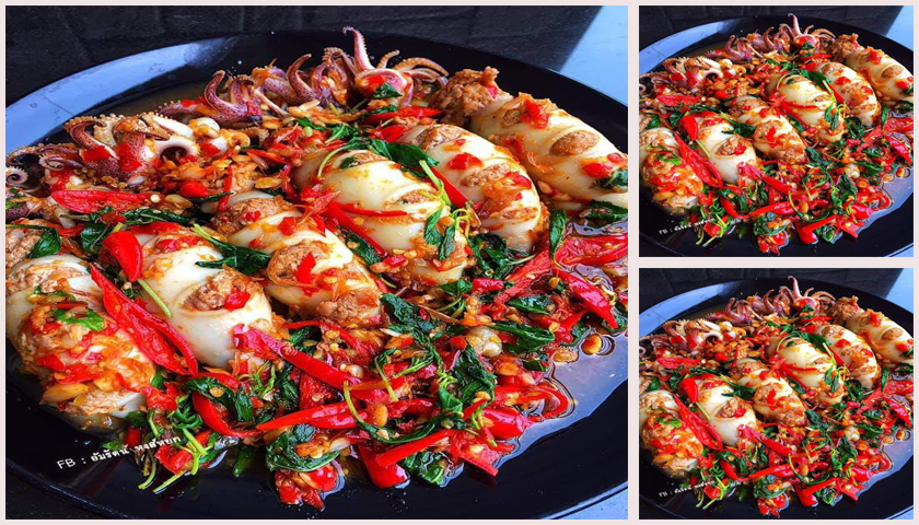 ผัดกะเพราปล าหมึกยัดไ ส้ อร่อยทำง่าย ต้องลอง