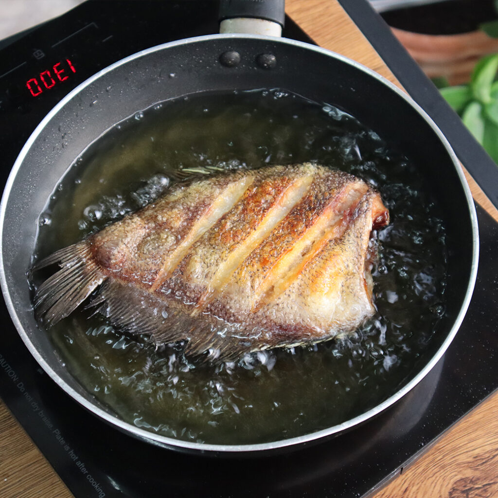 -ปล าสลิดแดดเดียวล้างน้ำให้สะอาด หั่ นชิ้ นผึ่งให้แห้ง นำลงทอดให้พอสุ ก ตักขึ้นพักไว้