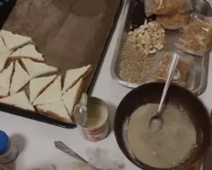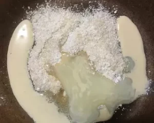 1.นำ น้ำตาล แป้ง นมจืด เกลือ นมข้น คนให้เข้ากัน นำไปไฟอ่อน พอส่วนผสมละลาย ใส่เนยน้ำผึ้ง คนให้เข้ากัน จากนั้นนำมาพัก