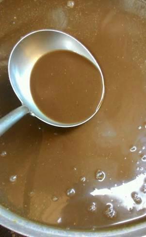 3 เมื่อครบเวลาแล้วให้เราปิดไ ฟ นำลงจากเ ต าหรือเทใส่กระทะป า กกว้างเพื่อทิ้งไว้ให้เย็น