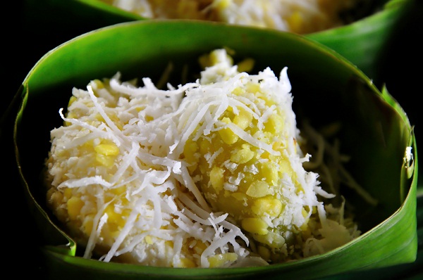 6. คลุกแป้งนึ่งสุกกับส่วนผสมมะพร้าว จัดใส่จาน รับประทานคู่กับส่วนผสมงาและน้ำตาลทราย
