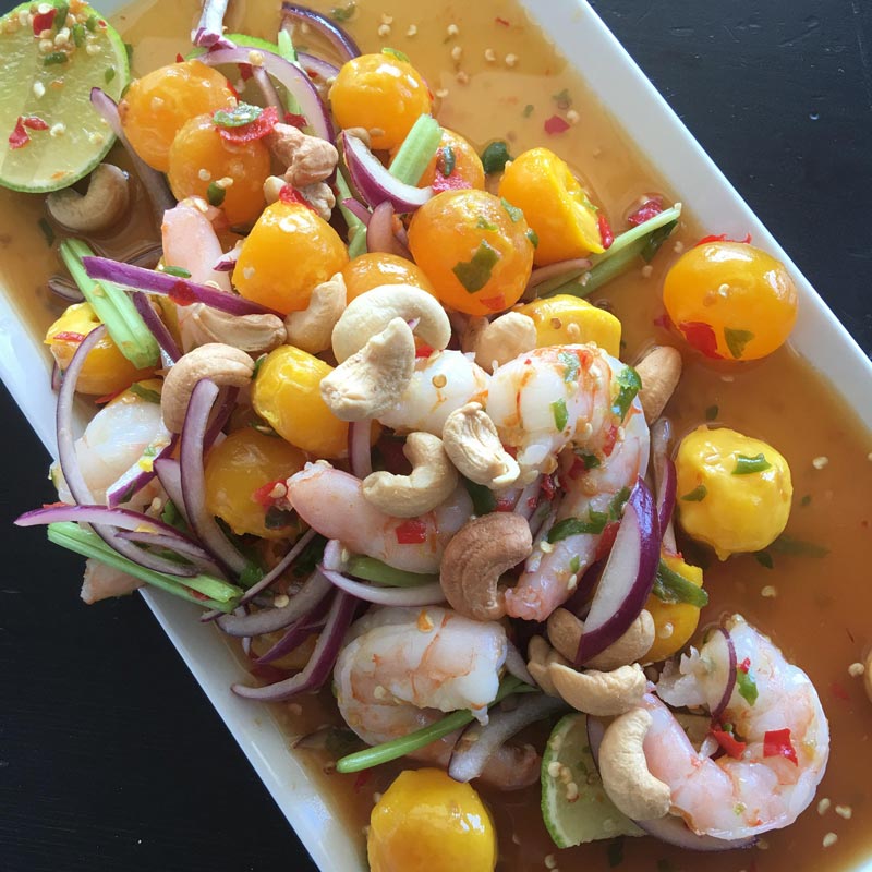 เมนูยำไข่แดงเค็มสูตรนี้ใส่กุ้งสดกับเม็ดมะม่วงหิมพานต์
