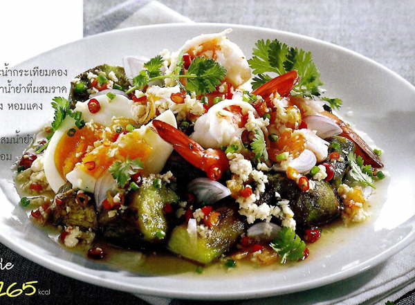 ยำมะเขือยาวเผากุ้งสด เมนูลดน้ำหนักสุดแซ่บ