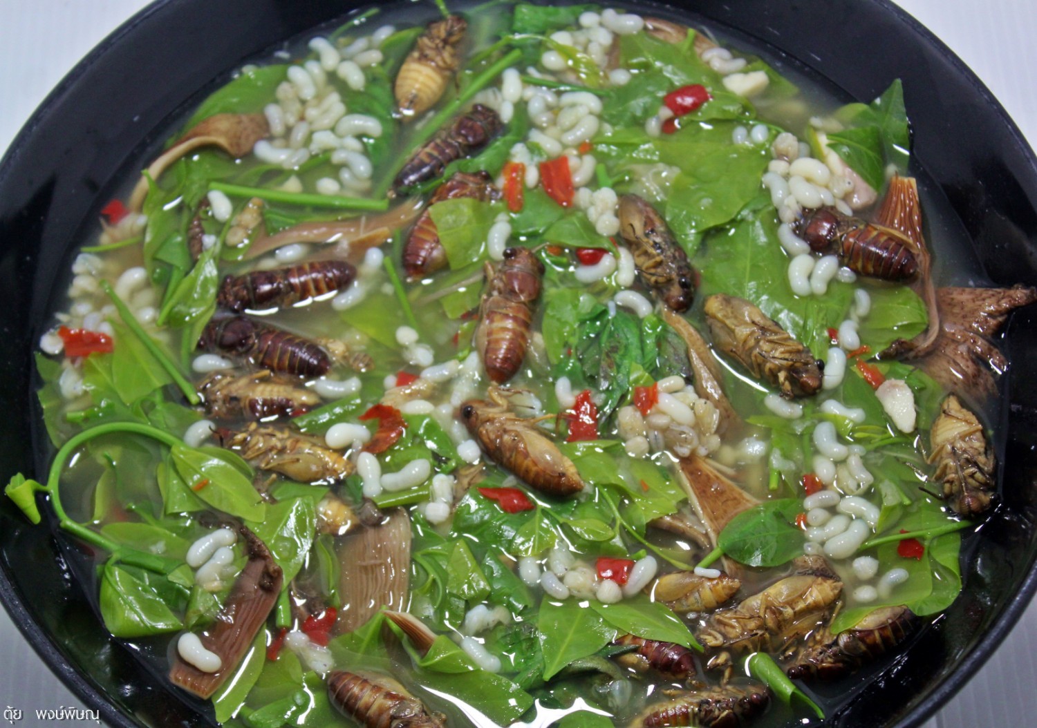 แกงผักหวานใส่ไข่มดแดงและจั๊กจั่น