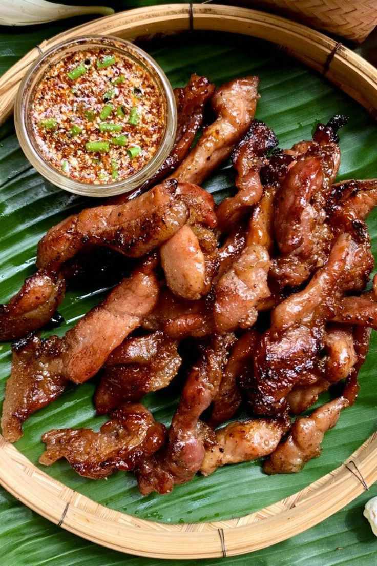 1.หั่นหมูเป็นชิ้นตามต้องการ นำใส่ชามผสมตามด้วยเครื่องปรุงทั้งหมด