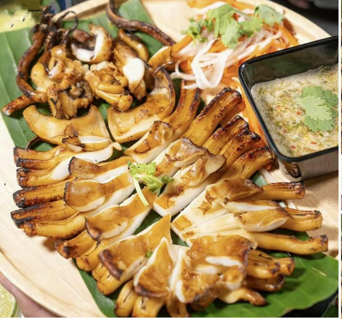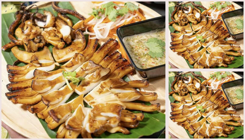 1. เสิร์ฟหมึกย่างร้อนๆ กับน้ำจิ้มซีฟู้ด