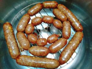 -ยั ดไ ส้ แล้วใช้เ ชื อก มั ดขนาดตามที่ชอบ ของเรามั ดไป 3 ขนาด ใช้ไม้จิ้ ม ฟั น จิ้ มไ ล่ลมออก
