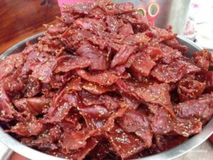 ตากไปประมาณ 2-3 ชม. แดดแ ร งมากก็จะแห้งเร็ว ถ้าอย า กให้เ นื้ อห มูมีความแข็งและเหนียวก็นำไปตากแดด