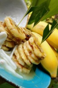 กล้วยปิ้งซอสกะทินมสดมะพร้าวอ่อน