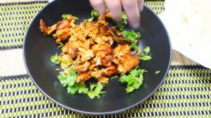 • เสร็จแล้วก็จัดลงจานเลย