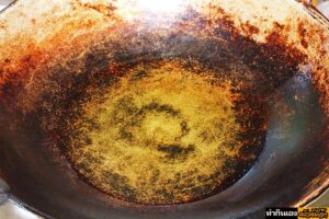 3.ตั้งกระทะใช้ไฟกลาง รอจนน้ำมันร้อน