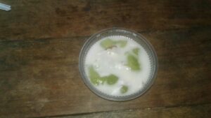 7.พอเย็นดีแล้วตักกะทิใส่ถ้วย
