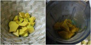2. พอนึ่งเสร็จแล้วนำไปใส่ในโถปั่นพักรอไว้ก่อนครับ