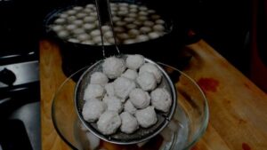 24.ลูกชิ้นเริ่มสุกแล้ว เตรียมน้ำเย็นจัด มารอไว้