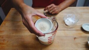 7.ตามด้วยผงฟูค่ะ
