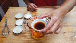 2.มาปรุงส่วนผสมที่จะลงไปปั่นรวมกับเนื้อกันค่ะ มีน้ำเปล่า เย็นก็ได้ ไม่เย็นก็ได้ค่ะ ใส่น้ำปลา