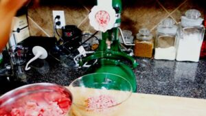 ต้องเนื้อเย็นจัดตลอดค่ะ เพราะว่าลา นวดจะมีความร้อนทำให้เนื้อไม่เหนียวนะคะ ต้องเย็นตลอด เดี๋ยวไปใส่ช่องแข็งอีก 45 นาทีค่ะ