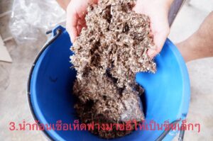 4.ขั้นสุดท้าย ครอบด้วยถุงพลาสติก (เห็ดต้องการความร้อน ชื้น)