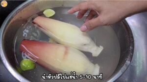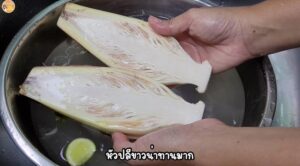 3.ใส่หัวปลีลงไปแช่ 5-10 นาที