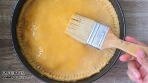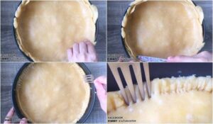 • ใช้ส้อมกดขอบพาย หรือใครจะทำเหมือนขอบพัฟก็ได้