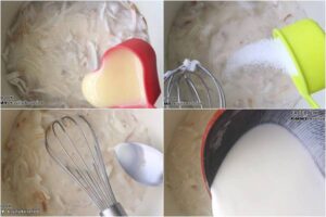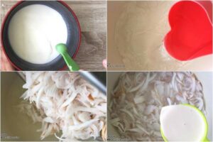 • นำน้ำมะพร้าว (ส่วนที่ 1) ผสมกับแป้งข้าวโพด พักไว้