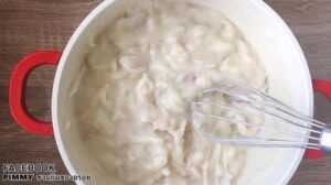 • พอใช้ส้อมหรือพายตะล่อมพอแป้งจับกันแล้วก็ใช้มือกด ๆ นวด ๆ เบา ๆ ไม่ต้องนวดหนัก หรือนวดนาน เอาแค่แป้งเข้ากันเป็นก้อน เพราะถ้า