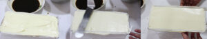 7.ชั้นสุดท้ายปาดหน้าให้เรียบ แรฟไว้ และแช่ตู้เย็นเพื่อให้เซตตัว 4-5 ชั่วโมง