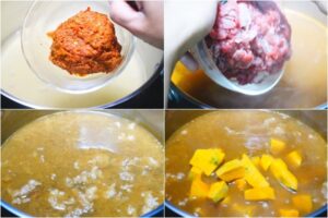 • จากนั้นตาใส่ผักที่สุกยากก่อนค่ะ ตาใส่ฟักทองก่อนเลยค่ะ