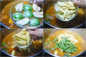 • ตามด้วยมะเขือเปราะ รอให้ฟักทองพอนิ่มนะคะ ไม่ต้องให้สุก เพราะเดี๋ยวพอใส่ผักอย่างอื่น สุดท้ายฟักทองจะเละก่อน