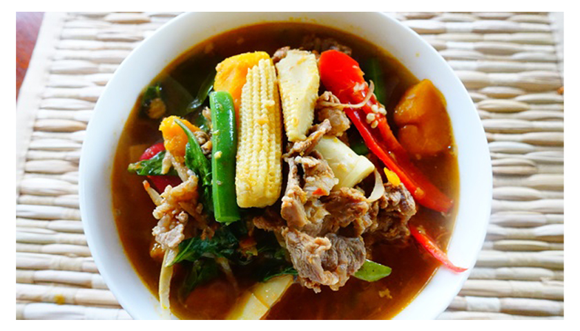 • สุดท้ายต้องใส่ข้าวคั่วค่ะ น้ำแกงจะได้เข้มข้น หอมด้วยค่ะ