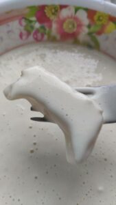 2. ผสมแป้งทอดกรอบกับน้ำเย็นจัด คนผสมจนแป้งละลาย