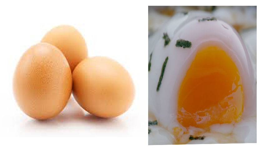 1.ไข่ไก่ 3 ฟอง เพิ่งนำออกมาจากตู้เย็นและไข่ยังเย็นอยู่