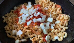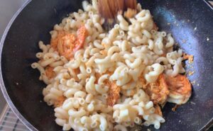 -ใส่มักกะโรนีต้มสุกผัดให้เข้ากันค่ะ