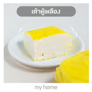 2. เต้าหู้เหลือง : มีทั้งแบบแข็งและแบบอ่อน มีลักษณะเป็นชิ้นสี่เหลี่ยม โดยแบบแข็งรสชาติจะออกเค็ม ส่วนใหญ่จะใส่ในผัดไทย หมี่กรอบ
