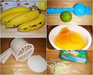 • 2. บดกล้วยและบีบมะนาวพักไว้